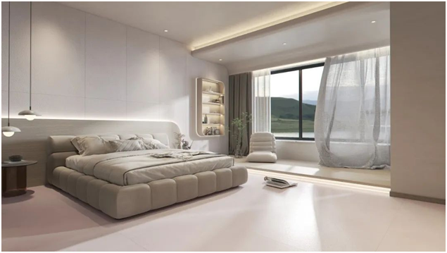 溫軟的暮雪云山為空間營造純凈、夢幻的基調,淡雅、柔和,削減了色彩對情緒的影響,將時光的柔軟與精致細細描摹,展現空間的無限可能,隨心百搭任意家具,營造出舒適減壓、高級感十足的家居氛圍。