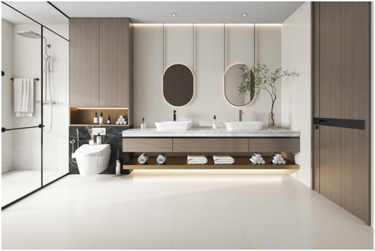 規格升級,600×1200mm增強小空間視覺感,拯救局促的廚衛空間,讓它呈現出實用性強、干凈溫暖的狀態。