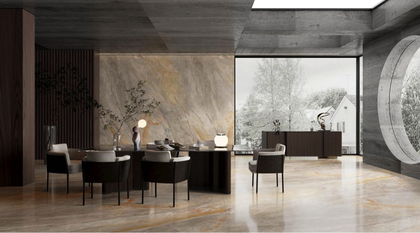 感受藝術與自然結合的奢華閃耀,能強900×1800mm現代瓷磚系列,從公共商業場所到家裝空間,不管是全屋通鋪還是裝飾點綴,均可呈現高級定制空間的奢華感。把高端空間之美推向極致。身處方寸,體驗與更大的世界交集。