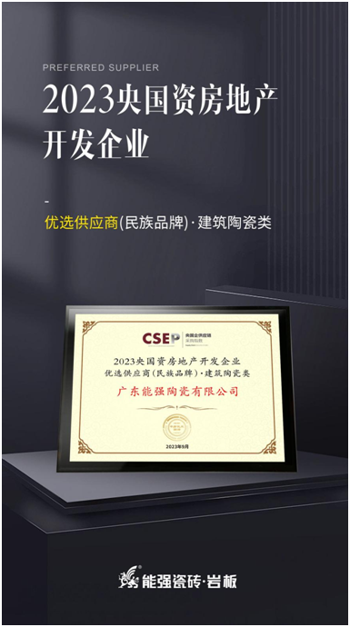 大牌實力 | 能強(qiáng)瓷磚入選“2023央國資房地產(chǎn)開發(fā)企業(yè)優(yōu)選供應(yīng)商(民族品牌)?建筑陶瓷類”