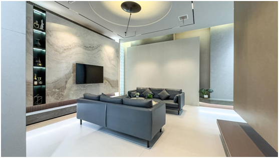 井然有序的產品展示更加突出石材紋理,極致的材料與光感碰撞,定下了品質生活的空間基調。