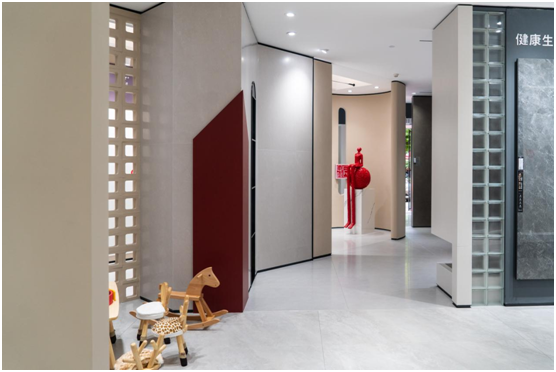 能強(qiáng)瓷磚百色旗艦店店面面積超500m2,展廳設(shè)計(jì)由能強(qiáng)瓷磚總部團(tuán)隊(duì)全程跟蹤設(shè)計(jì),秉承匠心理念以藝術(shù)展示的觸筆再次探索不同于以往的空間體驗(yàn),保持沉穩(wěn)、簡潔調(diào)性的同時(shí)充滿靈動(dòng)感,在色彩格調(diào)、產(chǎn)品展示、空間場景體驗(yàn)上優(yōu)化升級(jí),展廳已經(jīng)不再是單一的選材場所,而是融合了場景體驗(yàn)、藝術(shù)欣賞和社交接待等多重功能。