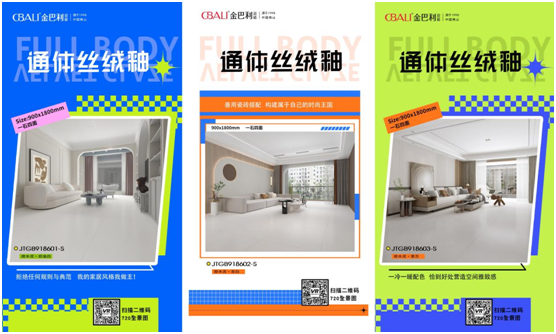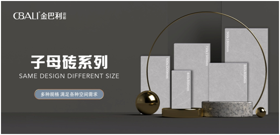 2023年金巴利重磅推出子母磚系列,包含通體大理石、肌膚釉、絲絨釉等工藝,多規格延展滿足各種空間需求,打造一體化視覺空間體驗。