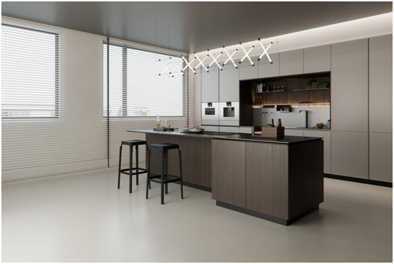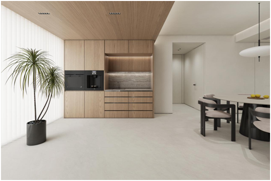 深淺色系的搭配,讓廚房視覺感不再局促;開放式廚房空間設(shè)計(jì),拾光輕理石的光伏單晶體技術(shù)在磚面形成細(xì)密的堅(jiān)固晶體保護(hù)層,全面提升耐磨度、防污度、止滑度、通透度、細(xì)膩度,會讓清潔打理更簡單哦。