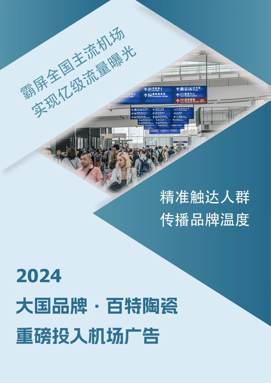 2024年9月,百特陶瓷以全新的姿態亮相全國各大機場,迎接每一位旅途中的探索者。以高頻流量曝光品牌實力,綻放品牌全新視覺!再掀品牌力量高潮!