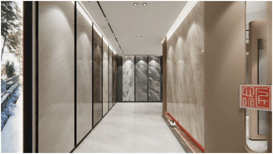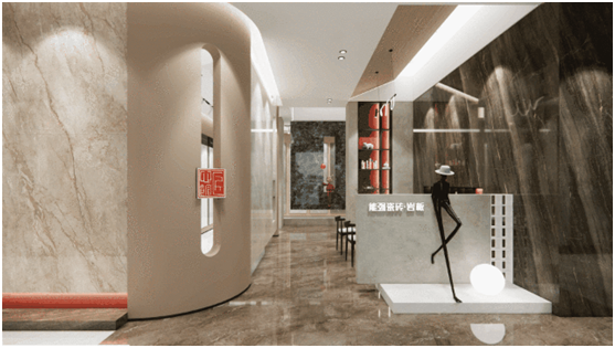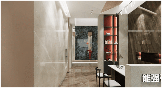 【能強瓷磚金壇旗艦店】展廳外立面浸潤東方文化的悠然風(fēng)雅,糅合現(xiàn)代風(fēng)格的明快簡約,風(fēng)雅韻味十足,體現(xiàn)品牌深厚的匠心文化底蘊。