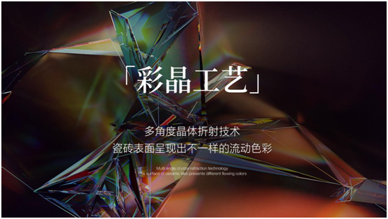 「星河流砂」采用彩晶工藝,憑借多角度晶體折射技術,使瓷磚表面呈現不一樣的流動色彩,為空間注入蓬勃生命力。