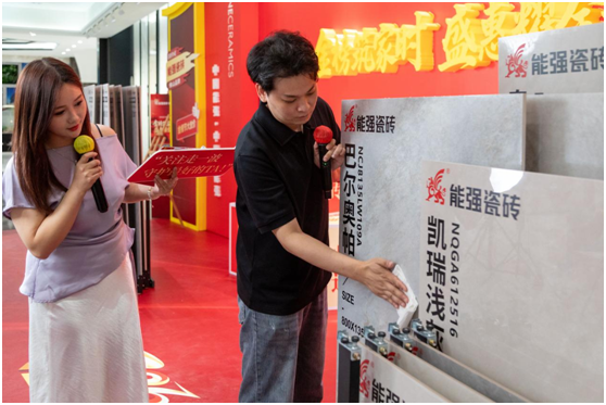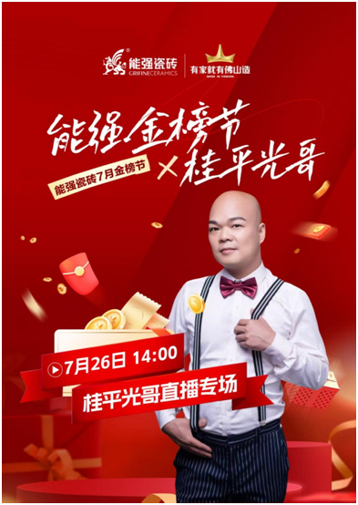 為助力品牌年中大促,能強瓷磚金榜節(jié)全國聯(lián)動特邀知名網(wǎng)紅達人【桂平光哥】于7月26日下午親臨能強瓷磚總部,開啟一場別開生面的大型直播活動。此次直播通過趣味互動、獨家福利和沉浸式體驗,為觀眾帶來一場視聽與產(chǎn)品鉅惠的雙重狂歡。