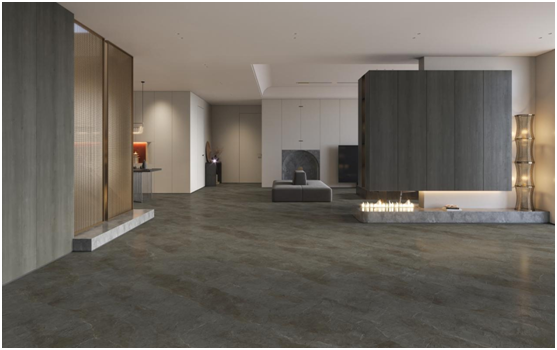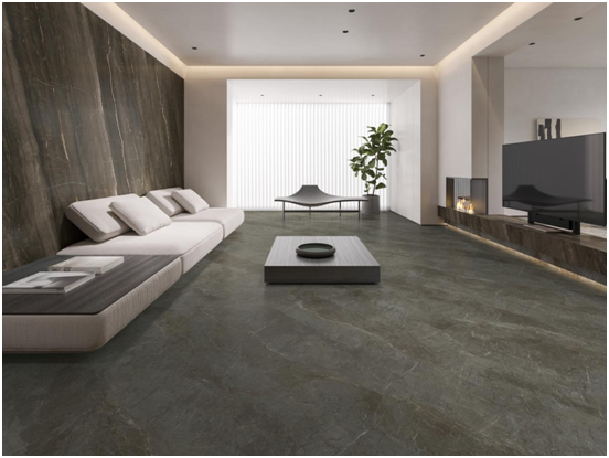 石材產(chǎn)地源于意大利,格林維爾紋理淺簡(jiǎn),磚面分布著刀刻般劃痕,很好地復(fù)刻天然石材的質(zhì)感,線條豐富多變,整體深邃有韻味。