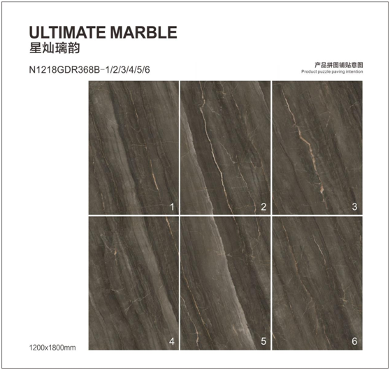 能強瓷磚【極致理石】星燦璃韻,深棕色系大理石紋瓷磚,53°光感與新中式的適配度堪稱滿分,1200x1800mm規格無縫大面積鋪貼,大氣的紋理仿若山川河流,每一眼都是視覺的盛宴。