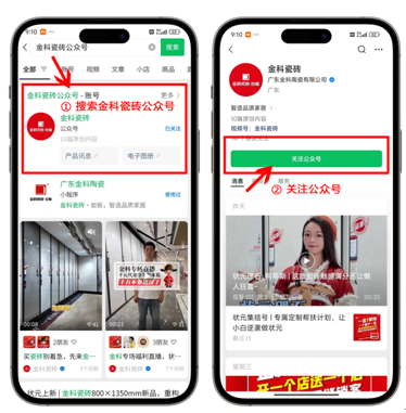 微信搜索「金科瓷磚」官方微信公眾號,點擊[關注]