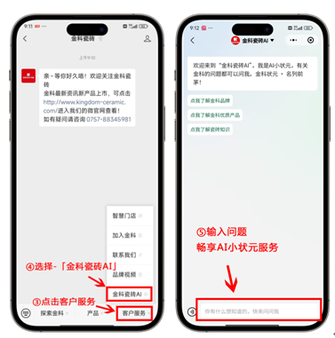 微信搜索【金科瓷磚小程序】進入→點擊【金科AI】,輸入問題或需求,即可參與體驗。