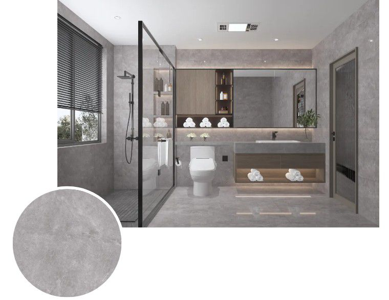 金科中板系列磚面選用著名的國際建陶高清噴墨技術,一石多面讓整體空間鋪貼連貫大氣,紋理變化與色澤效果媲美天然石材,空間盡顯雅奢質感。