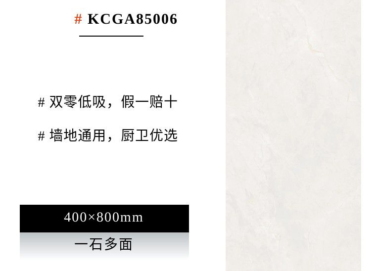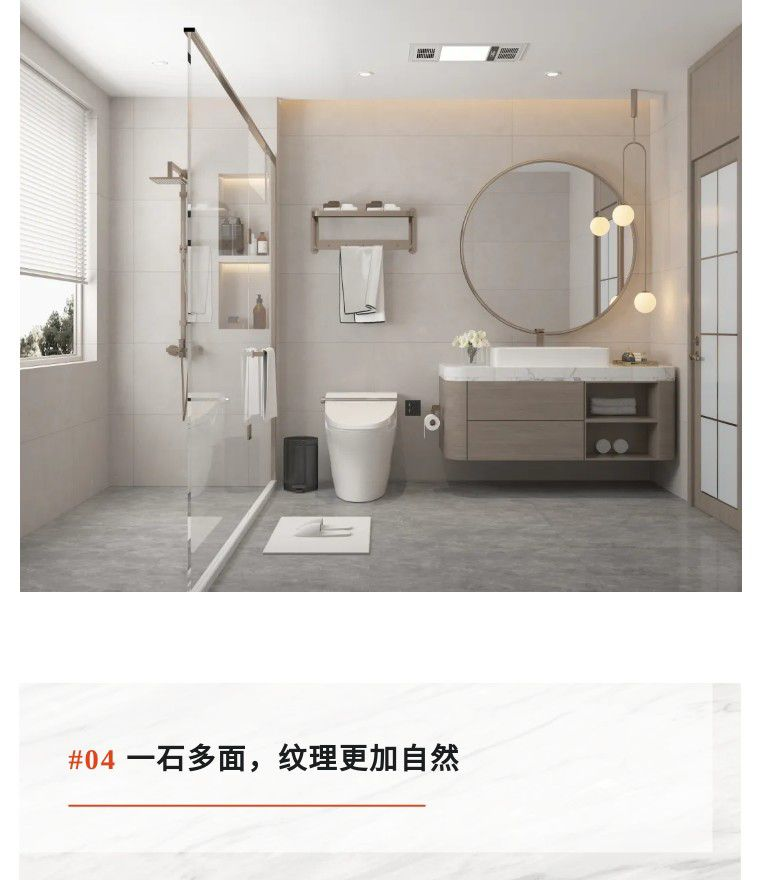 吸水率控制在雙零標準,瓷磚性能更穩定;不同光感、不同色系、石材光澤度不同,讓你的廚衛空間更加好看耐用。更多中板選擇,請關注金科瓷磚!