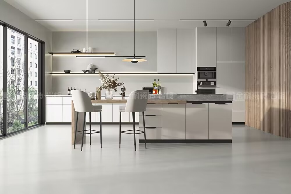 提取天然石材紋理加以藝術重構組合,簡潔,清新,純粹,自然。米白,有一種特殊的溫柔,兼容當前流行的裝修風格,強大的包容能力還能讓光線不足的小空間明亮開闊,是空間裝修不可或缺的時尚單品之一。