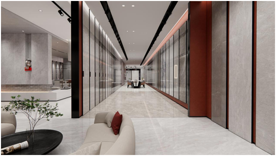 以感悟生活為設計原則,呈現領先美好人居生活,酒泉金科瓷磚簡美館內部井然有序的布置,多種花色產品展示,規格齊全,由設計師精心搭配,精心軟裝陳設,盡心展現理想中家的模樣。