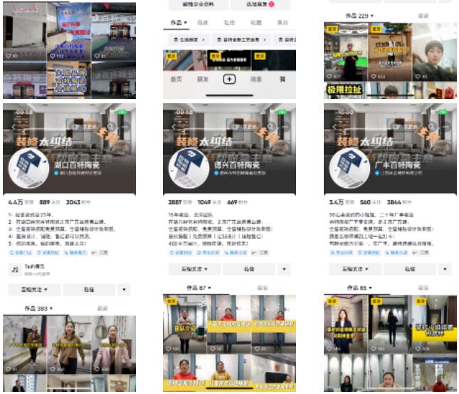 通過精準定位、優質視頻內容、高效垂直運營等等,實現品牌IP化,通過矩陣式的曝光,持續百特品牌熱度,也將重塑傳統經銷商的新格局,賦能發展瓷磚抖音線上營銷渠道。