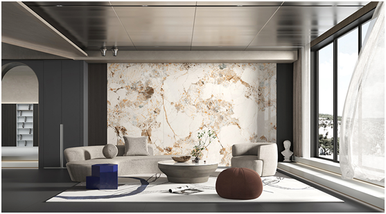 自帶高級時尚氣質(zhì),溫潤還原天然石材的逼真紋理,極富層次和流動質(zhì)感,如河流般蜿蜒靈動,交織著自然與藝術的碰撞。