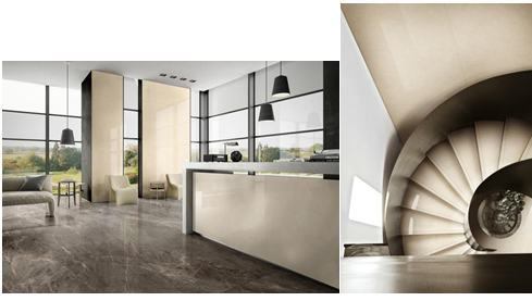 米黃色底紋上有少許白花,紋理細膩而不規(guī)則,產(chǎn)品也有著很好的光亮度,被廣泛應用于室內(nèi)墻地面裝飾。