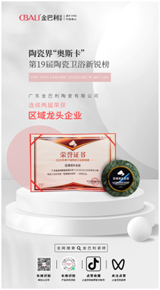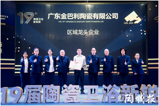 金巴利瓷磚連續2屆榮獲新銳榜【區域龍頭企業】稱號