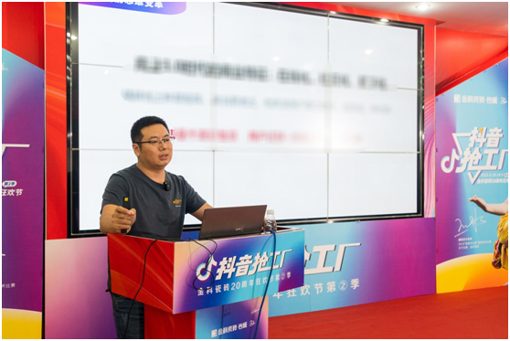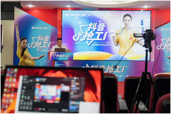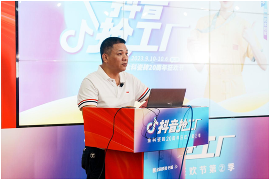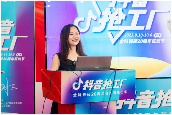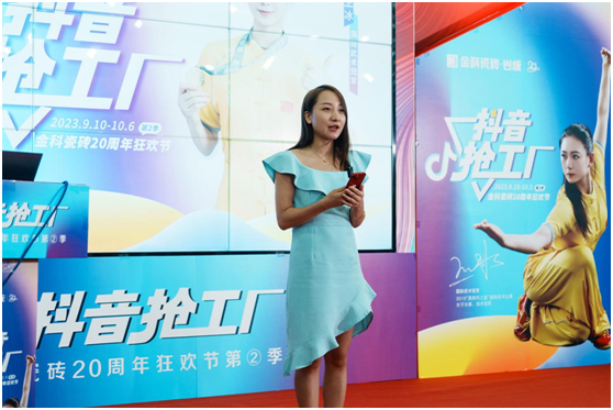 在過去的一個月,金科瓷磚組織全體終端經銷商開展「抖音百團大戰」活動,許多經銷商通過此活動成功從線上獲客,引流到店成功簽單。本次「抖音搶工廠——金科20周年狂歡節第二季」,金科將延續「抖音百團大戰」計劃,以線上線下雙結合模式,以實現業績最大化。為此,會議特邀金科終端小網紅——東營總代理苑樂凱、韓城總代理賈悅悅、焦作總代理陳芙蓉三位杰出經銷商以及市場部終端策劃師劉永生、策劃部主管凌玲跟直播間的家人們進行經驗之談。