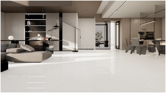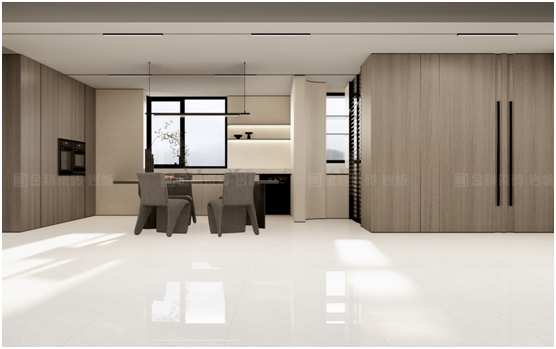 淡雅柔和的底色與若隱若現的紋理,如一位溫和謙遜的君子,相比于啞光質面,亮光面更能彰顯貴族氣息,為空間創造出一種簡奢新風尚。