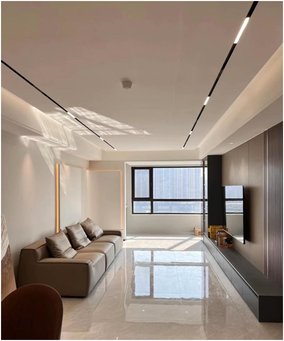這個案例業主日常工作繁忙,其理想中的家是溫馨舒適,能讓他暫時忘掉繁雜工作帶給他的壓力。因此,經過與設計師的溝通,最終他們選用了金科750×1500mm大板·流光米黃通鋪,再搭配軟軟糯糯的米白色軟裝及自然質樸的原木元素打造而成的奶油風作為整體家居格調。