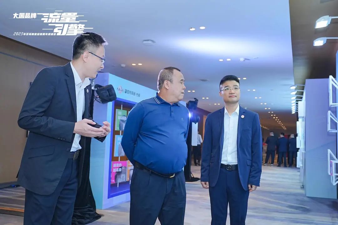 順成陶瓷集團董事長-梁有福先生在百特陶瓷總經理雷振業先生和百特市場部負責人曹陽先生的陪同下,參觀了百特陶瓷線上新渠道的成果展示,對線上新渠道取得的成果表示肯定。