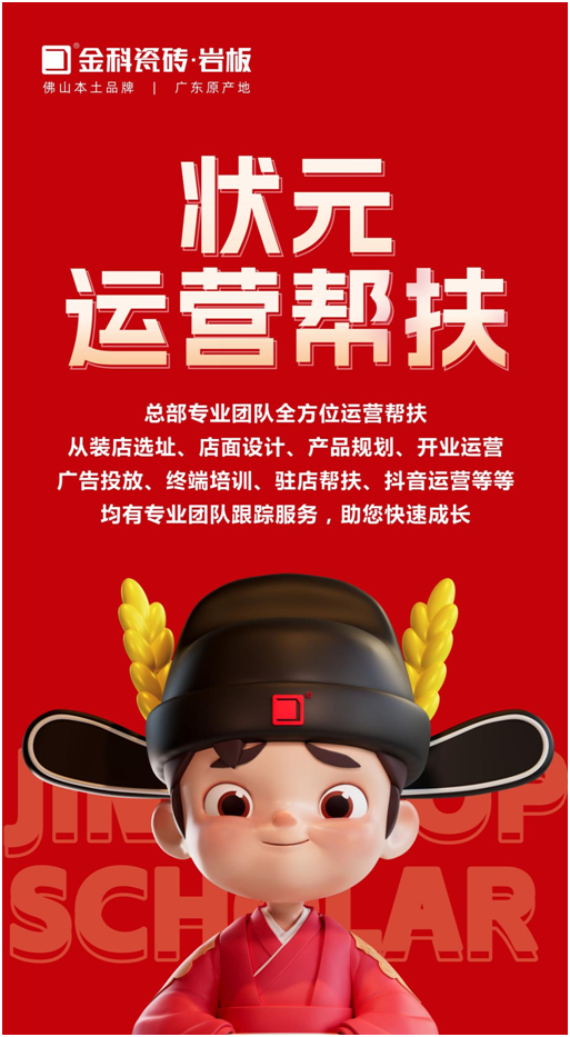 4月1日,「金科狀元養成攻略」金科瓷磚2024春季大型抖商招募正式啟動,以「行業首創雙店模式,開一個店送一個店」為亮點面向全國招募合作伙伴,開啟一場嶄新的戰略布局。