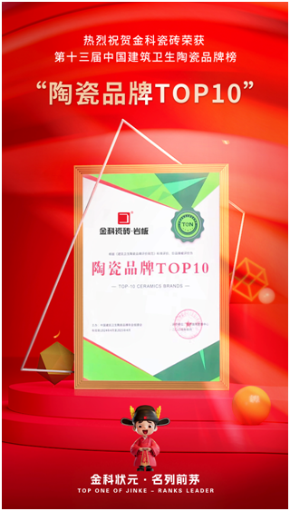 權威認證,狀元榮譽 | 恭喜金科瓷磚榮獲“陶瓷品牌TOP10”獎項