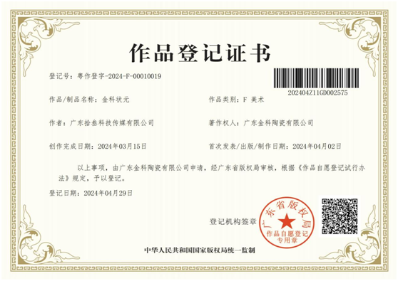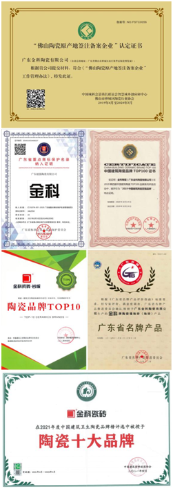 勤勤懇懇搞生產,奮進創新促發展。金科瓷磚在20余載的品牌發展史上載譽滿滿,不僅是行業首批獲得“國家3C認證”的企業,而且多次榮獲“陶瓷十大品牌”、“廣東省重點商標保護名錄”、“中國建筑陶瓷百強企業”、“陶瓷TOP10”等多項榮譽,狀元榮耀實至名歸。
