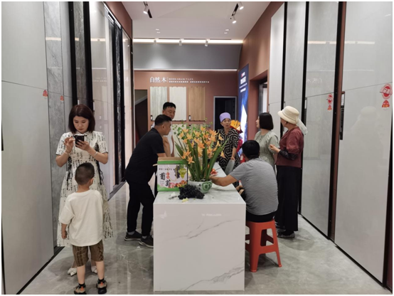 與此同時,新店也吸引了眾多賓客參觀品鑒,新店的每一個空間場景都使用了金科瓷磚各系列新品打造,極具設計感和時尚感的產品空間應用讓賓客們嘆為觀止,紛紛表示很喜愛這樣的空間鋪貼效果,加上開業當天優惠力度空前,促使眾多賓客搶購下定,開業當天即迎來開門紅!