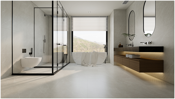 細膩的紋理、透潤的光感,極致還原天然大理石的原生美感。地面通鋪,無限延續的石紋營造出一眼望不到邊的大視野,把自然的壯闊景觀搬進家中。