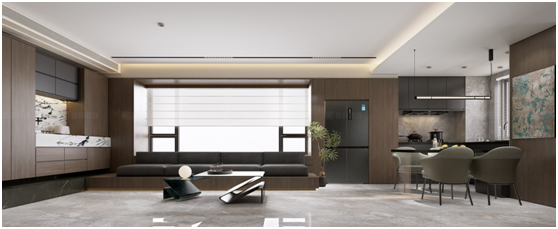 淺灰色大理石地磚,如一片沉靜的湖。它穩(wěn)穩(wěn)承托著空間,低訴著不張揚(yáng)的奢雅,深淺木質(zhì)與光影在它溫潤(rùn)的肌理上起舞,七彩晶耀泛起的光斑成為這靜謐空間的底色,不爭(zhēng)不搶?zhuān)瑓s讓家的靜謐與高級(jí)感悄然升華。