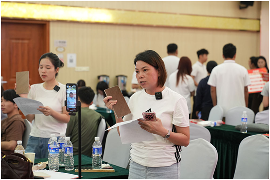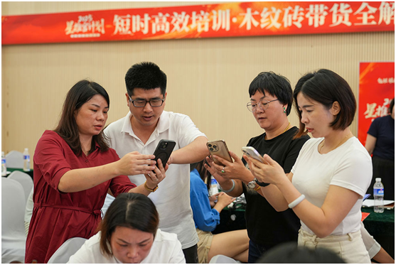 為期兩天的特訓圍繞產品賦能、內容創作、直播轉化與數據運營等核心板塊展開。從“木紋磚產品深講”到“爆款視頻腳本創作”,從“直播間高轉化話術”到“精準投流策略”,課程設置環環相扣、步步進階。與會學員不僅完成從理論到實戰的跨越,更通過“殿試”般的直播實戰與復盤會議,真正掌握短視頻引流與直播轉化的關鍵方法論。