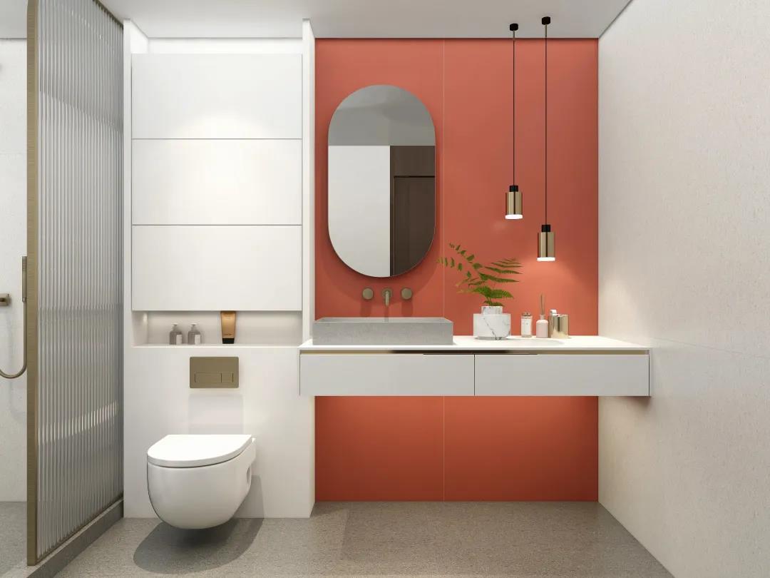 飽和度相對較高的桑染紅,色彩雍容秀麗,自帶“女王范”氣場。搭配淺色的墻磚和白色柜體,展現著恰到好處的精致與清新。