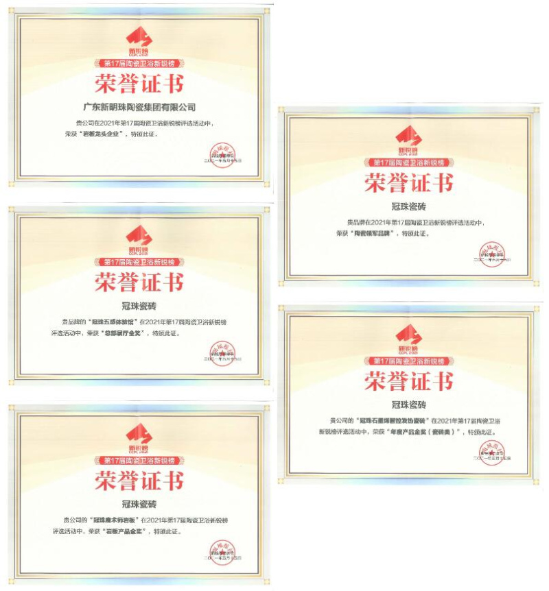 一年一度的行業盛事——陶瓷衛浴行業“新銳榜”頒獎典禮剛剛落下帷幕。今年新銳榜共吸引了近200家瓷磚衛浴企業參與角逐,競爭激烈,而冠珠憑實力一舉斬獲了五項大獎,成為頒獎典禮的最大贏家之一。