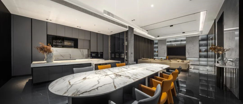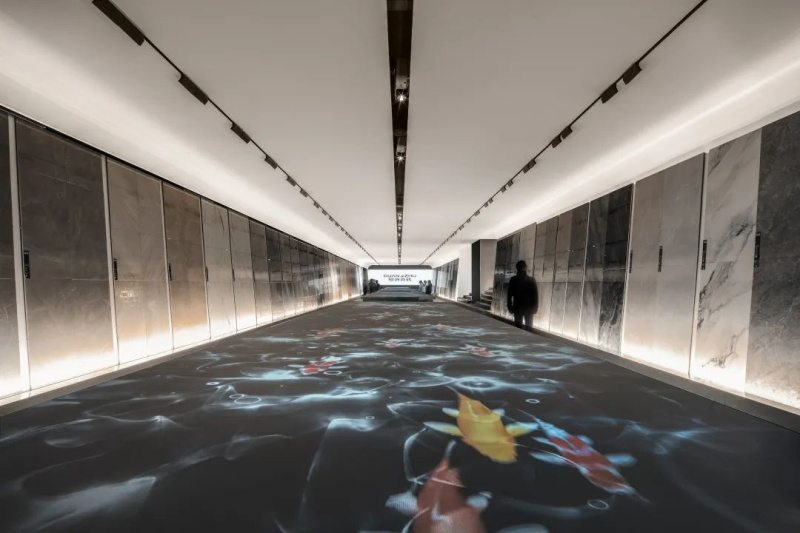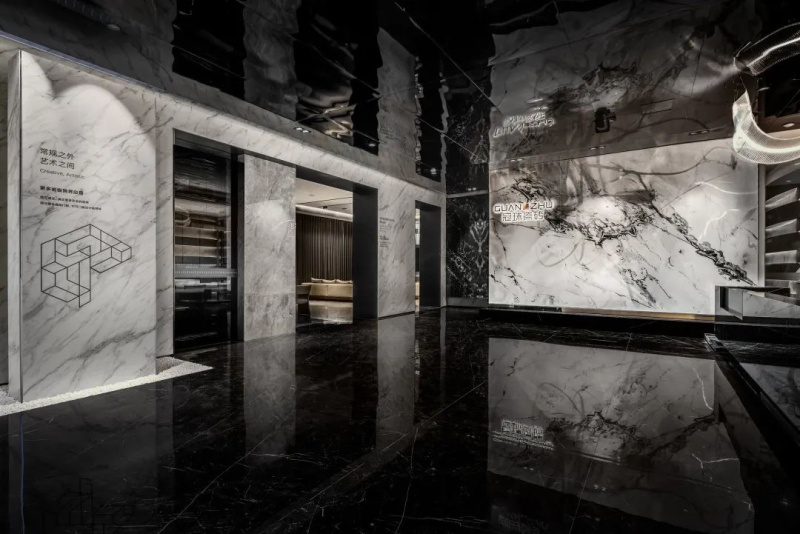 設計師吳勝人透露:“在設計冠珠瓷磚展廳時,我思考不應該將其打造成單純追求功能性與美觀的展廳,并將此想法當作本次的設計前提。”他表示,“因為新明珠是中國陶瓷業界的頭部企業,升維后的冠珠品牌也致力于打造‘中國品牌’,所以,這個展廳設計在向眾人講述瓷磚原料的優良品質與其設計感、功能性之前,我更想打造一個能夠彰顯新明珠作為業界頂尖企業、冠珠品牌作為‘中國品牌’所擁有的自信與從容氣度的、如同象征符號般的空間。”