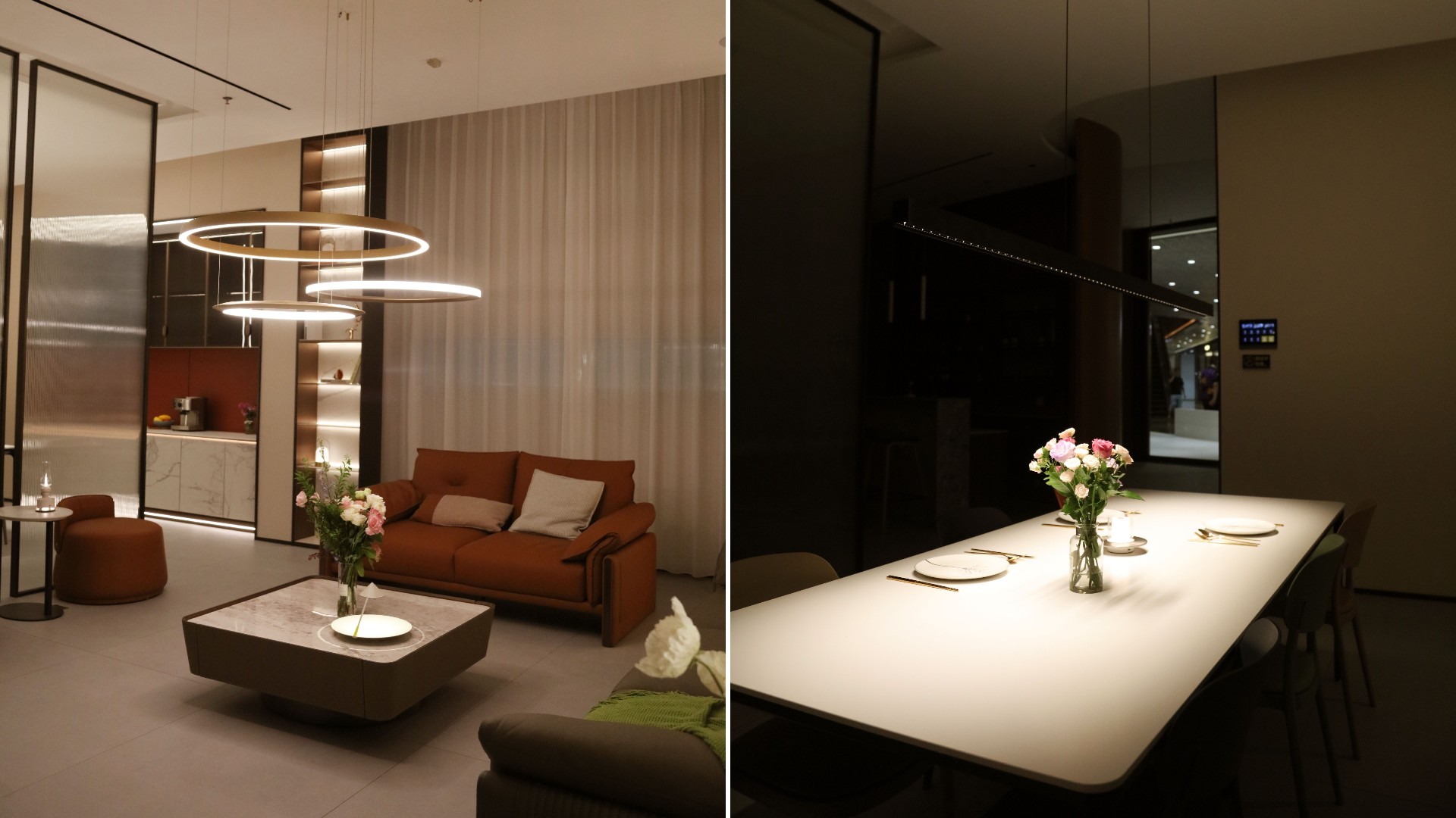 在場(chǎng)景中,你可以選擇各種個(gè)性化照明方案,滿足你的照明需求,比如客廳有會(huì)客模式、獨(dú)處模式;餐廳有聚餐模式和、燭光晚餐模式;臥室有浪漫模式、入眠模式和喚醒模式……每個(gè)場(chǎng)景中使用的燈光,從燈具類型到布局方式,都全方位為場(chǎng)景氛圍服務(wù),采用高質(zhì)量的健康光源與精心調(diào)配的色溫和亮度,共同打造出一個(gè)智能化的宜居場(chǎng)景。不少嘉賓表示,從未想到家里的燈光還能這么“玩”!