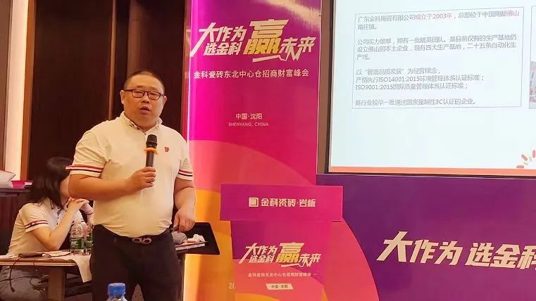會上,金科瓷磚品牌總經理廖文祺親臨現場并發表致辭,廖總表示:東北中心倉的成立降低了地區當地經銷商的運營成本,輕量化投入,盈利更輕松。同時,金科瓷磚東北分公司的落成,是金科瓷磚下沉區域市場的關鍵一步,今后將全面加強對東北區域的布局與幫扶。