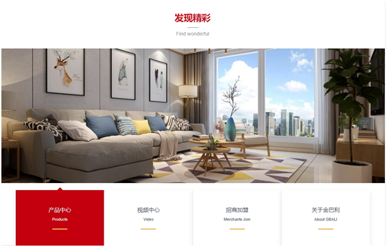 優化欄目架構共設置“產品中心”“視頻中心”“招商加盟”“關于金巴利”四大主題板塊