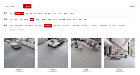 產品欄目功能優化升級,新官網支持信息精確檢索,共設系列、質感、規格三種選項,以遞減方式便于用戶快捷定位目標產品。