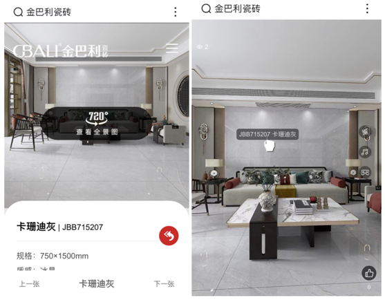 新增720°VR全景圖展示,高清產品圖+平面效果圖+72°VR全景圖,讓用戶沉浸式體驗產品紋理及空間展示。