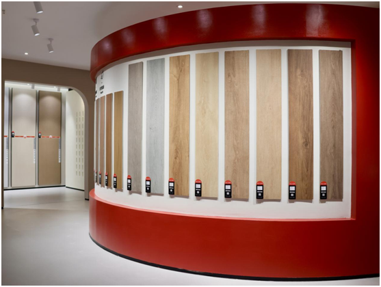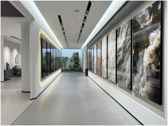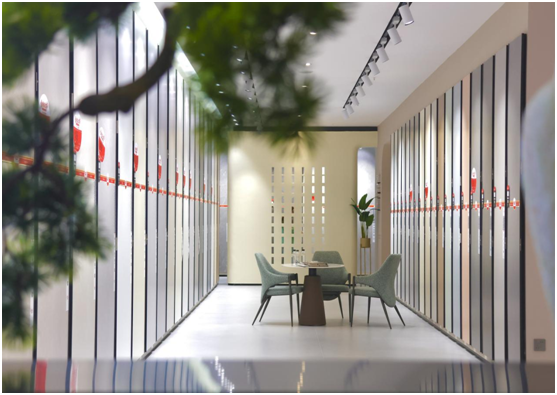金巴利云南省運營中心選材區域的設計上,在展現品牌調性的同時,通過與燈光的和諧搭配,最大限度突出每一款瓷磚的質感、色感、肌理感,個性化和設計感,讓消費者都能看清看懂。