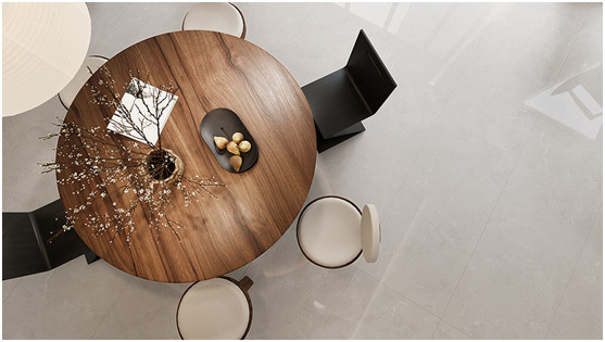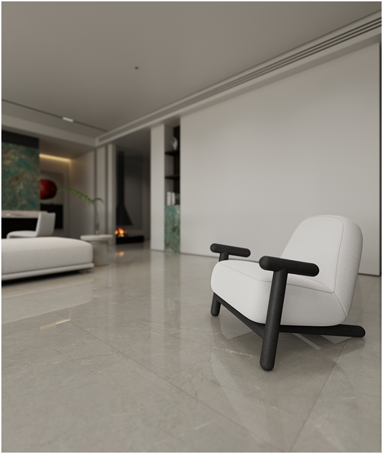 灰白色細紋在磚面自然流淌,賦予表面更多的變化,空間層次豐富,勾勒精致細節,優雅舒適的格調呼之欲出,滿足人們對靜謐生活美好的追求。