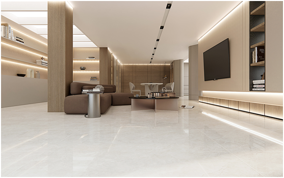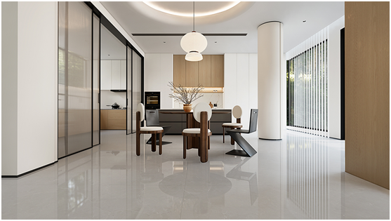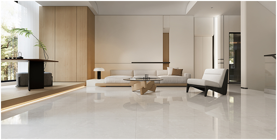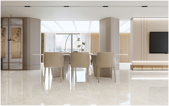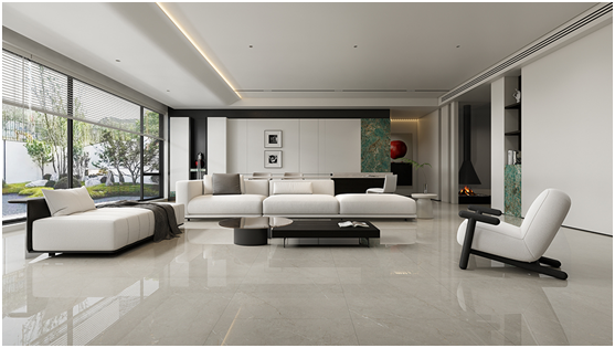 3、80°舒適亮光。產品光澤度嚴格控制在75°-80°之間,還原大理石自然拋光后的光感,明亮而不刺眼,令居室散發出舒適明亮的輕奢感。