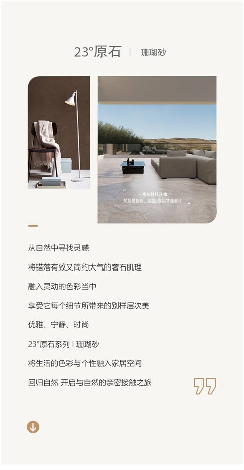 23°原石系列新品鑒賞 | 珊瑚砂 柔和的色調和細膩的紋理相結合,賦予空間一種獨特的自然美感