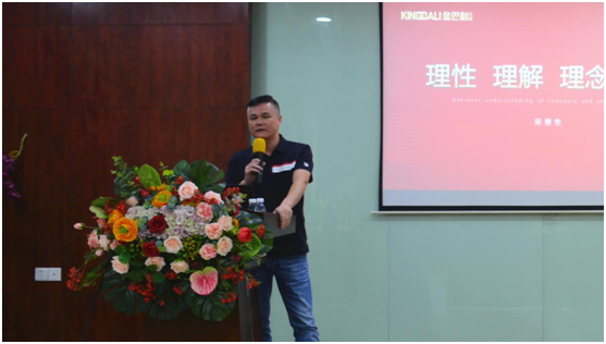在會議上,金巴利企業董事總經理吳總從“理性 理解 理念 理會”為切入點進行梳理總結,從外部市場環境到內部企業政策,用理性的思維,理解市場、行業的困境和公司、終端面臨的挑戰,并要堅持不懈地做好終端客戶服務,是賦能不斷奮斗朝向的目標。