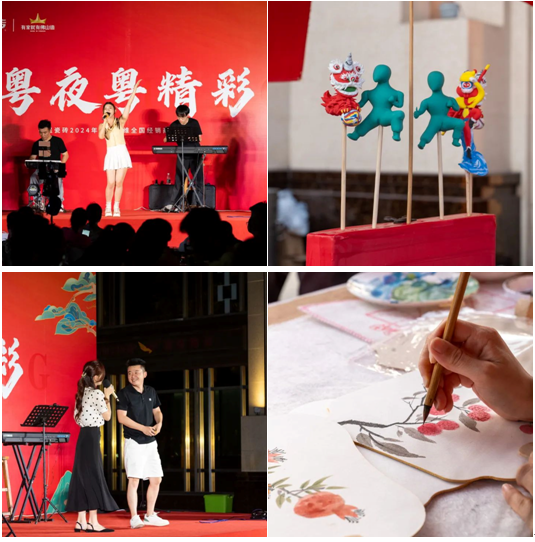 《粵夜粵精彩》歡迎夜宴在樂隊的激情演奏中拉開序幕。夜宴不僅準備了豐盛的自助餐和燒烤類美食,還安排了豐富的粵文化互動環(huán)節(jié),來自全國各地的宗師們紛紛參與手工制作功夫公仔和手繪國潮扇畫,體驗粵文化的獨特魅力。