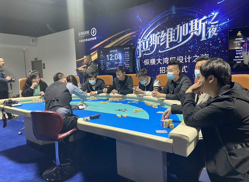 隨著荷官的發(fā)牌計(jì)時(shí)開始,拉斯維加斯之夜正式進(jìn)入到了德州撲克大賽。在經(jīng)過兩小時(shí)的激烈博弈后,最終的八位選手帶著各自的籌碼進(jìn)入到了總決賽。